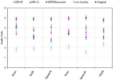 | Coding scheme | ISR-08 | ISR-12 | MPEG Surround | Low Anchor | Original |